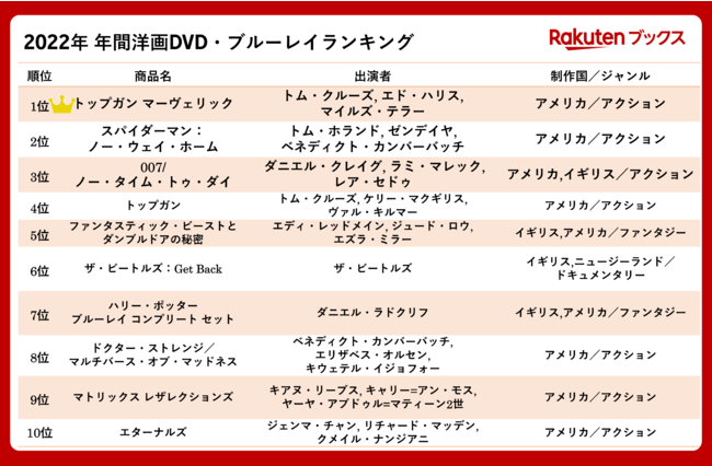 ・「楽天ブックス」2022年 年間洋画DVD・ブルーレイランキング