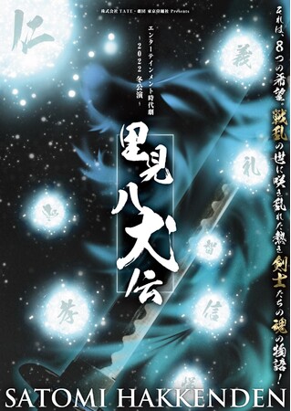株式会社TATE(東京都中野区)主催、株式会社TATE・劇団 東京侍踊社 presents エンターテインメント時代劇 2022冬公演『里見八犬伝』が2022年12月23日 (金) 〜2022年12月25日 (日)になかのZERO 小ホール(東京都中野区中野2丁目9番7号)にて上演されます。 チケットはカンフェティ(運営:ロングランプランニング株式会社、東京都新宿区、代表取締役:榑松 大剛)にて発売中です。
