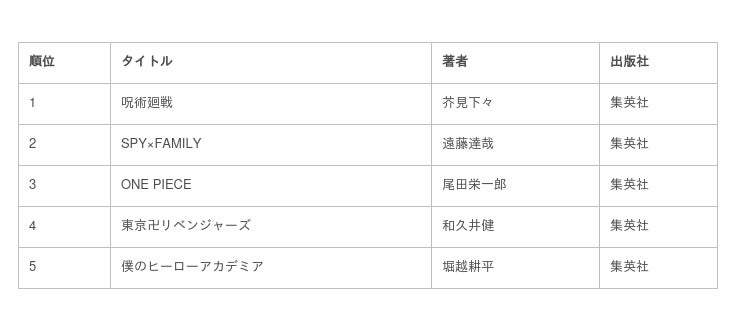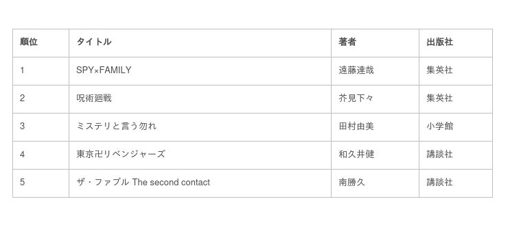 コミックレンタルでは、今年アニメが放送され大ヒットを記録した『SPY×FAMILY』が1位に輝きました。