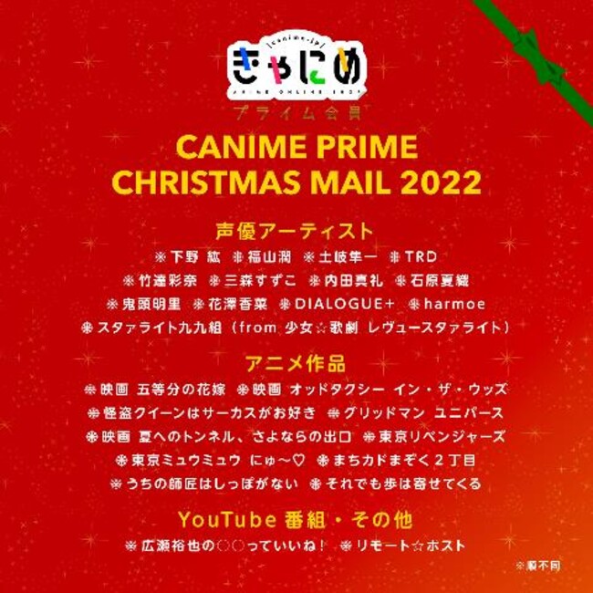 人気声優&作品からのプレゼント!好評企画「きゃにめプライム クリスマスメール2022」が今年も開催!!