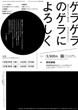 2022年12月29日(木)〜12月30日(金)に東京・下北沢の駅前劇場にて東京にこにこちゃん『ゲラゲラのゲラによろしく』が上演されます。