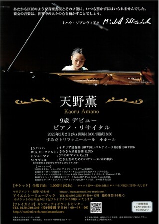 『天野薫 9歳デビュー ピアノ・リサイタル』