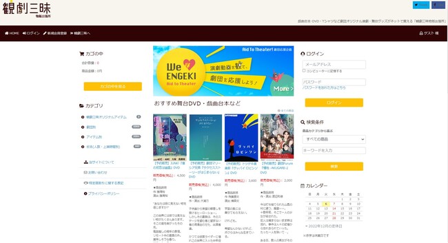 上演台本・DVD・Tシャツなど演劇関連の商品を中心に、約400団体の3300以上の商品を取り扱っています。