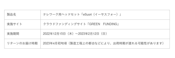 テレワーク用ヘッドセット「eSus4(イーサスフォー)」クラウドファンディングサイトで先行予約開始!