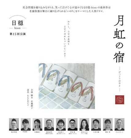 劇団日穏-bion-が今年夏に上演した舞台「月虹の宿」の内容を映像で振り返りながら、作品のテーマである安楽死・尊厳死について、また演劇や映画といったエンターテイメントが社会に与える影響について、現役医師である明星智洋氏(江戸川病院 腫瘍血液内科部長)をゲストにお迎えし、演出のたんじだいご、企画・脚本の岩瀬顕子が語り合う上映会&トークイベント。