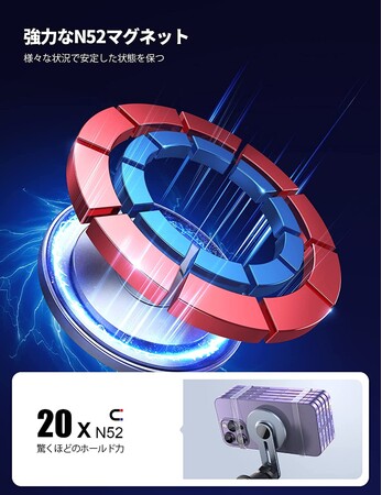 MagSafe対応と上級グレードN52磁石でスマホをしっかりホールド