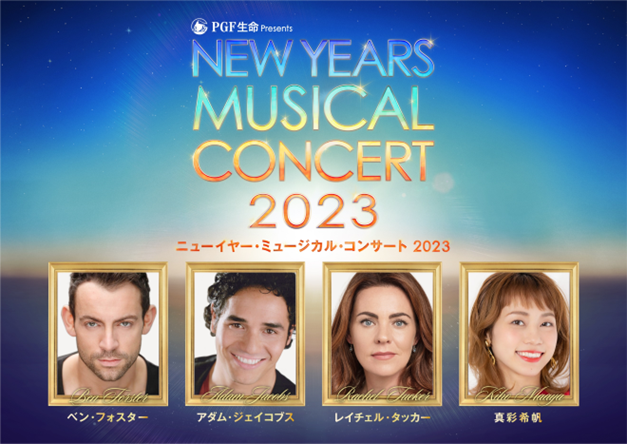 豪華キャストが心躍るミュージカルの名曲を披露します。ミュージカル初心者からリピーターまで、誰もが楽しめる親しみやすい楽曲をラインナップし、新年のお祝いムード溢れる豪華なミュージカルの祭典をお届けします。今回は、英国よりベン・フォスター、米国からはアダム・ジェイコブス、そしてレイチェル・タッカーが来日。さらに、元宝塚歌劇団雪組トップ娘役の真彩希帆が初めて海外キャストとのコラボレーションを披露します。『ニューイヤー・ミュージカル・コンサート 2023』でしか観られない一期一会の競演にご期待ください!