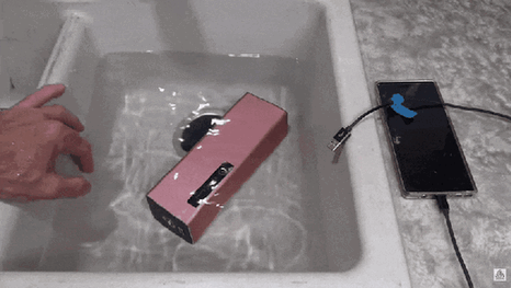 水に落としても大丈夫! アウトドアに最適なポータブル電源! 防塵・防水(IP67)、耐火、防爆、耐衝撃、耐圧の安全性 と 超軽量、コンパクトの携行性を併せ持つ究極のポータブル電源が誕生!