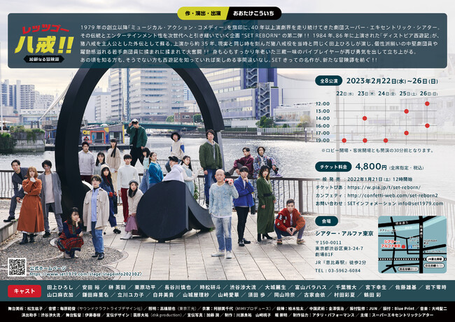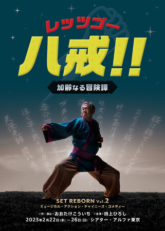 株式会社スーパーエキセントリックシアター(東京都品川区、代表:大関 真)主催、SET REBORN vol.2『レッツゴー八戒!!〜加齢なる冒険譚〜』が2023年2月22日(水)〜2月26日(日)にシアター・アルファ東京(東京都渋谷区東 3-24-7 劇場 B1F)にて上演されます。 チケットはカンフェティ(運営:ロングランプランニング株式会社、東京都新宿区、代表取締役:榑松 大剛)にて1月7日(土)12:00より先着先行発売開始です。