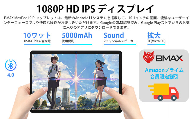 👍👍このMaxPad I9 Plusタブレットは、最新のAndroid11システムを搭載して、流暢なユーザーインターフェースでより快適な操作がお楽しみいただけます。GoogleのGMS認証済み、Google Playストアからのお気に入りのアプリにダウンロードできます。四つの高効率な「A55(1.8GHz)」コアを搭載します。これにより、高いパフォーマンスと高い電力効率を両立させています。さらに、5000mAhの大容量バッテリーを搭載し、最大5時間の1080p動画を再生することができます。長持ちする待機時間は、通勤途中や出張、旅行のときにも気軽に使うのに最適です。