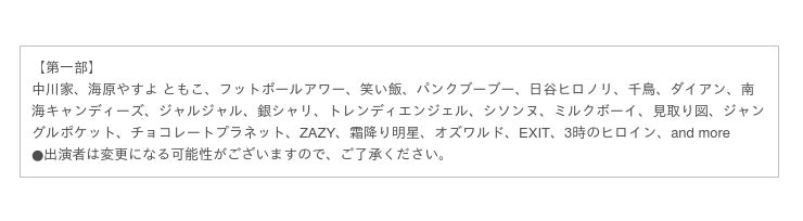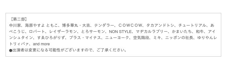 お笑いファン必見の超実力派芸人たちの至極のネタは、第一部、第二部ともに怒涛の4時間を予定。