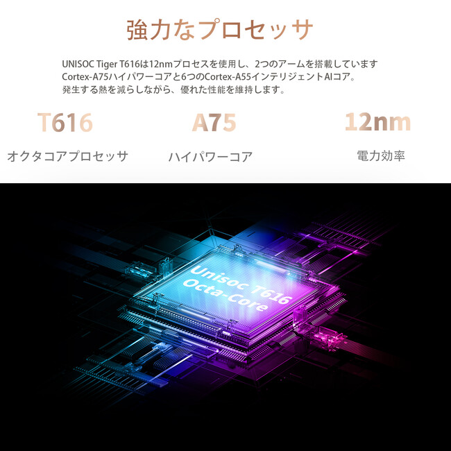 Teclast T40Pro タブレット は、UNISOC Tiger T616プロセッサを利用するために、2.0GHzの周波数と12nm低消費電力を備え、2つのArm Cortex-A75ハイパワーコアと6つのCortex-A55インテリジェントAIコアを搭載しています。 発熱を抑えながら優れた性能を維持できます。距離センサー、光センサーなどを搭載します。明るさ自動調整できます。ケースを利用すると、自動ロック/ロック解除も簡単に実現できます。より良いユーザー体験を提供します。