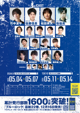 2018年より「週刊少年マガジン」(講談社)連載中の、金城宗幸(原作)、ノ村優介(漫画)によるエゴイストFW育成サッカー漫画『ブルーロック』。2022年12月時点の累計発行部数は1700万部を突破し、第45回講談社漫画賞少年部門を受賞するなど多くのファンを魅了している。大人気サッカー漫画である本作は、2022年10月よりTVアニメが放送開始されるなどメディアミックスが展開されているが、この度2023年5月にタイトル初となる舞台化が決定した。