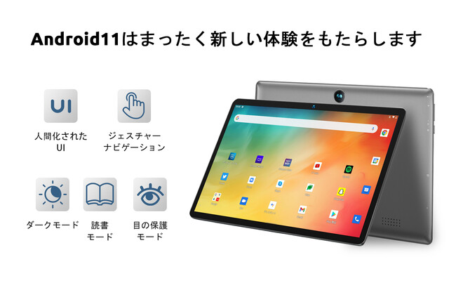 I9PLUSタブレットには Android 11 システムが搭載されており、ダークテーマ、ジェスチャー ナビゲーション、カスタムアイコンシェイプなどの機能が追加されましたs。シンプルかつ安全なUIでスムーズなタップ、スワイプ、スクロールの操作が出来ます。 システムの安全性も向上させており、ユーザーのデータセキュリティとプライバシーをより効果的に保護できます。GMS認証済みより、Google Play ストアから様々なゲーム、音楽、映画、テレビ、本、雑誌などにアクセスし、お気に入りのアプリ、Facebook、Netflix、TikTok、YouTube、LINEやTwitterをインストールできます。
