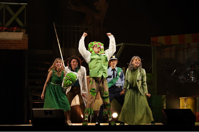 舞台になるのはアメリカのニュージャージー。いじめられっ子だったメルビン(福田)は産業廃棄物で汚染された街を救うために立ち上がった途端、汚染の黒幕である市長(霧矢)の命令で放射性廃棄物のドラム缶に放り込まれ、緑色のモンスターになってしまう。しかし、モンスターになって助けた片思いの相手、盲目の司書・サラ(平野)とはいいムードに。けれど彼は、実は自分がメルビンであることや、今はモンスターの姿をしていることをサラに明かす勇気がない。その頃、市長はメルビンの命を狙い――。