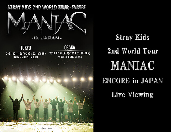 2023年2月25日(土)、26日(日)に京セラドーム大阪(大阪府)で開催される「Stray Kids 2nd World Tour "MANIAC" ENCORE in JAPAN」が、好評につき全国47都道府県の映画館にライブ・ビューイングすることが決定した。