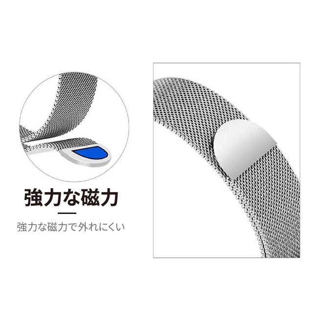バンドの先端をバンド本体に近づけるとなんと磁気の力で引き寄せ合います。