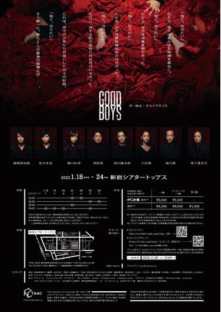 2023年1月18日(水)〜1月24日(火)に新宿シアタートップス(東京都新宿区)で上演のTAAC『GOOD BOYS』。その初日が開幕し、開幕コメントと舞台写真が到着しました。チケットはカンフェティ(運営:ロングランプランニング株式会社、東京都新宿区、代表取締役:榑松 大剛)にて発売中です。