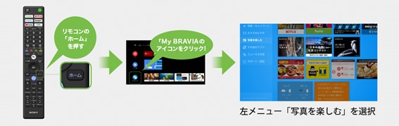 Android TV™ 機能搭載のテレビ ブラビアをネットワークに接続し、リモコンの「ホーム」ボタンからお入りください。