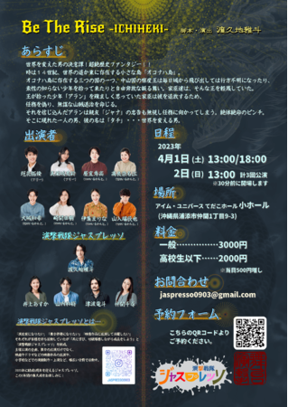 沖縄で活躍する若手劇団 演撃戦隊ジャスプレッソ結成5周年記念公演『Be The Rise -ICHIHEKI-』上演決定 カンフェティでチケット発売