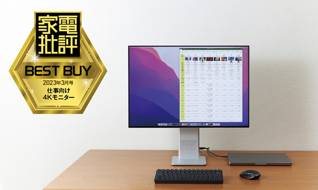 3:2比率で4K以上の解像度なので、作業スペースがとにかく広い! 画質も優秀で、すべての項目で標準の画質設定でも最高点を獲得しました。高さ調節もスムーズで、タ ッチバーによる操作も快適。接続端子がスッキリまとまっているので、使いやすさも良好です。価格はやや高めですが、3:2の画面スペースと画質を考慮すれば、それでも選ぶ価値アリ!
