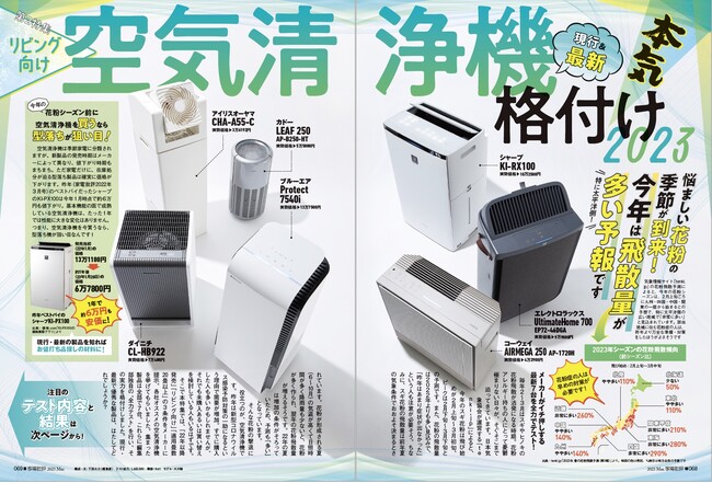 家電批評3月号は、「最新家電辛口ジャッジ」を総力特集。スマホで施錠を管理できるスマートロックや、臭いを気にせず捨てられる自動開閉ゴミ箱、ムダ毛ケアできるボディトリマーまで、物価高の今だからこそ失敗しない最新の家電情報をお届けします。さらに、メーカーがイチ押しする最新7台を集めてテストした「空気清浄機本気格付け2023」では、悩ましい花粉の季節に活躍する1台を探してランキング。ほかにも、健康管理に役立つウェアラブル家電や、スマホ用格安VRゴーグルなど、暮らしを快適にする家電情報が満載。本リリースでは、商品テストに基づくベストバイ製品の一部をご紹介します。