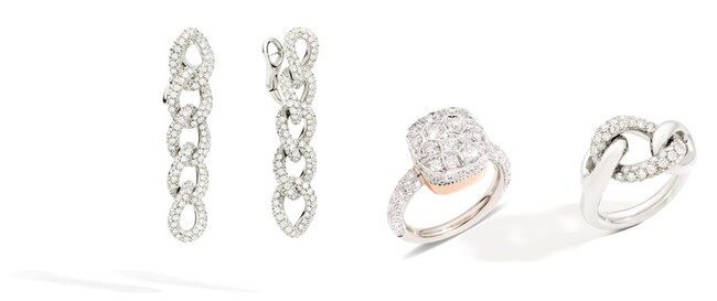 イヤリング「カテネ」、リング(左から)「ヌード」「カテネ」