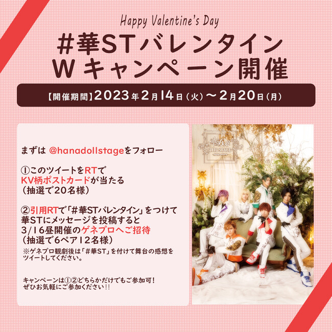 そんな「華ST」からバレンタインキャンペーンの情報が到着! 2月14日より、華ST公式ツイッター(@hanadollstage)でバレンタインキャンペーンを開催します。
