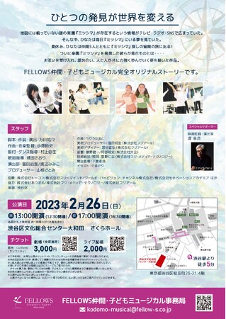 サイトHPはこちらからご覧いただけます。 https://www.fellow-s.co.jp/kodomo-musical/