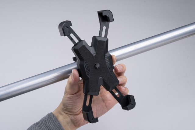 また、直径2〜3cmのバーやハンドルに取り付けられるため、ベビーカーのハンドルに取り付ければ、歩きながら通話したり、立ち止まって地図アプリを見たりすることも可能。その他、デスクやキッチンなど固定できる家具や什器さえあれば、好きな場所に設置して、スマートフォンをチェックすることができるし、クルマのシートのヘッドレストに取り付けて後部座席用モニターとして活用することもできるスグレモノだ。