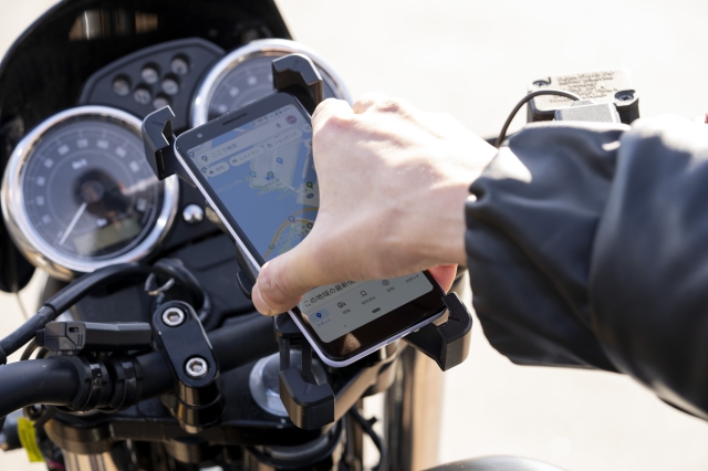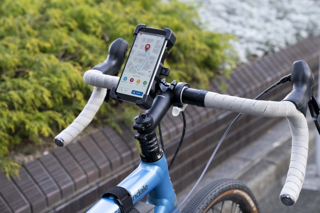 自転車やバイクで走行する際は、絶対にスマートフォンを注視しないこと。スマホを操作する際は、必ず、周囲の安全を確認した上で、脇に停車してから行なうようにすること。走行時は、地図アプリやナビアプリの音声ガイドをオンにしておくだけで、スムーズに最短コースを進むことができるはず。自転車やバイクで出かける時は、ぜひこの便利なアイテムを活用してほしい。