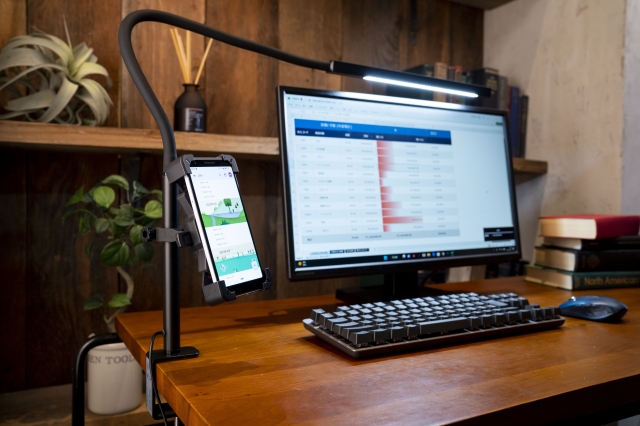 デスク周りに設置するとスマホをモニター代わりに使うこともできる