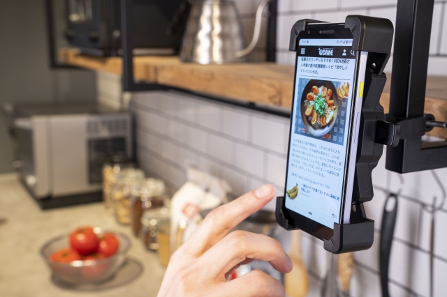 キッチンに設置するといつでもスマホでレシピをチェックできる!