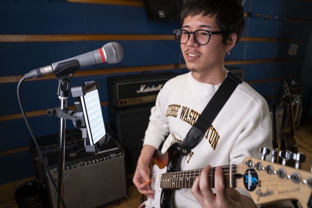 マイクスタンドに固定すれば譜面を見ながら楽器の演奏が可能。