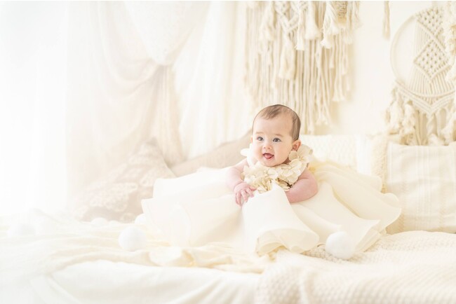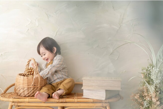時を経て味わいを増すアンティーク家具やドライフラワー、柔らかなおひさまの陽射し、おだやかな夜の夢を思わせるスタジオなど、時間の流れを感じさせる空間はお子さまの好奇心を刺激します。くるくる変わるどんな表情もお写真に仕上げられるよう、どこを切り取っても画になる計算し尽くされた作りは色味を統一しており、独自の「ワントーンフォト(R)」※2の世界観が広がります。