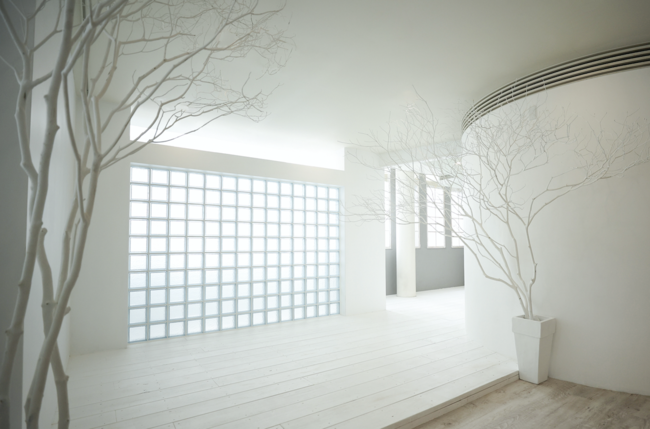 アトリエ木下の撮影コーナーの象徴とも言えるシンプルモダンなガラスブロックのオブジェのコーナー。奥行きが目を引く広々とした撮影スペースとなっております。
