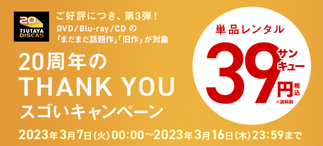 ―20周年のTHANK YOU!TSUTAYA DISCAS―