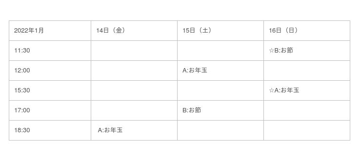 期 間:2022年1月14日(金)〜 1月16日(日)