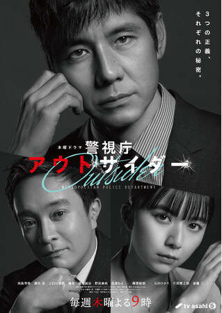 原作は『メゾン・ド・ポリス』『インディゴの夜』などで知られる加藤実秋氏の同名小説で、コミカライズも決定した人気作。西島が《見た目が極道の元マル暴オヤジ刑事》、濱田が《一見さわやかなのに大きな秘密を抱えたエース刑事》、上白石が《安定した就職先として警察を選んだ新米刑事》というクセの強いキャラクターにふんし、波乱の予感しかないワケありトリオを結成!警察組織の中で異質な存在=《アウトサイダー》である3人が持ちつ持たれつ、さまざまな難事件に挑んでいく。やがてそれぞれが背負っていた過去の真実が明らかになり、物語は壮大な復讐劇へとなだれ込んでいくことに――!?