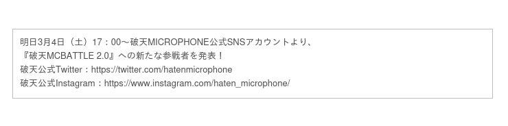 破天MICROPHONE-MCBATTLE & BEATBOXBATTLE- 公式ウェブサイト:https://haten.jp/