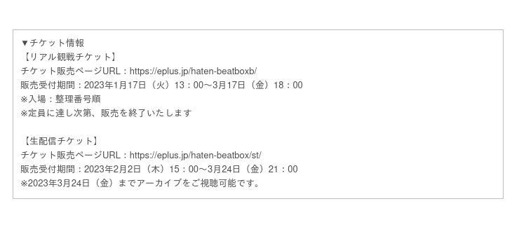 チケット販売ページURL:https://eplus.jp/haten-mc_beatbox/