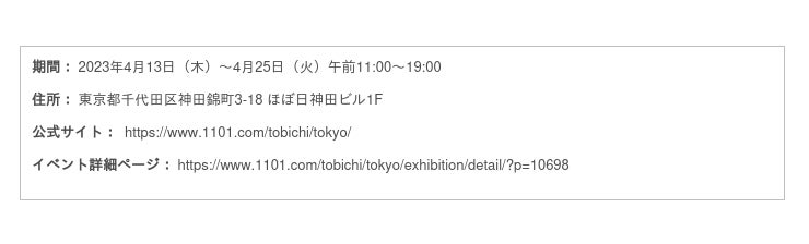 糸井重里氏が主宰するウェブサイト「ほぼ日刊イトイ新聞(ほぼ日)」が運営するTOBICHI東京(千代田区神田錦町)にて、撮影に使用された左甚五郎をはじめとする木彫人形達を展示いたします。