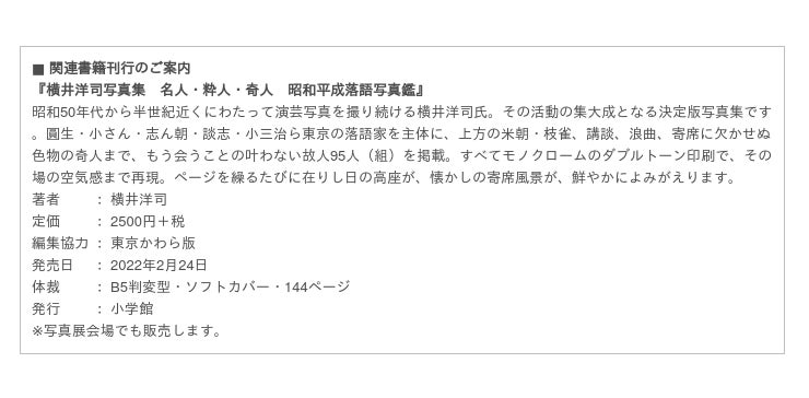 昭和から令和まで高座撮影半世紀。 落語写真家 横井洋司 写真展