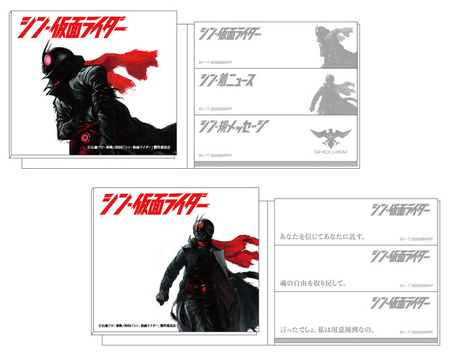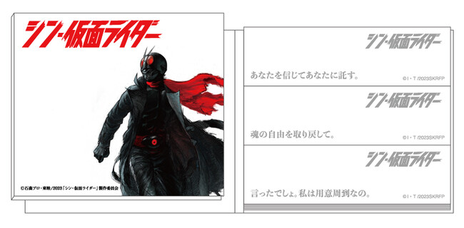 3月17日(金)より全国公開の映画『シン・仮面ライダー』の鑑賞済み映画半券を、ナムコの対象店舗へ持っていくと、「ナムコオリジナルふせん」がもらえます。ふせんは、”シン・着(新着)ニュース“や”シン・規(新規)メッセージ“など、映画タイトルをもじった“シン・規メッセージデザイン”と“セリフ付きデザイン”の2種類で、どちらも同僚や友人宛に使用したくなるデザインです。