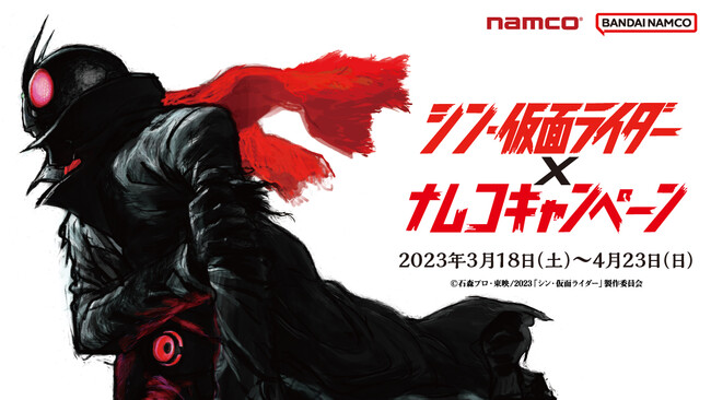 株式会社バンダイナムコアミューズメントは、映画『シン・仮面ライダー』の公開を記念して、ナムコオリジナルグッズがもらえるキャンペーンを、2023年3月18日(土)から全国約80店舗のアミューズメント施設「namco」で開催します。