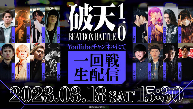 『破天BEATBOXBATTLE 1.0』1回戦全8試合を破天公式YouTubeチャンネル( https://www.youtube.com/@hatenmicrophone )にて、無料生配信いたします。