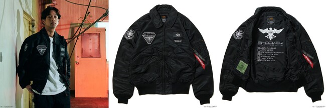 SHOCKERモデルは、劇中からインスパイアを受け、下級構成員のジャケットをイメージ。フロント部分、右袖のエンブレムパッチが『シン・仮面ライダー』の世界観を演出。内側背面にはSHOCKERロゴをプリント。また、左胸の面ファスナー”ALPHA INDUSTRIES”レザーワッペンを取り外すと「IF YOU WANT TO BE HAPPY BE」の文字が現れる仕様となっています。