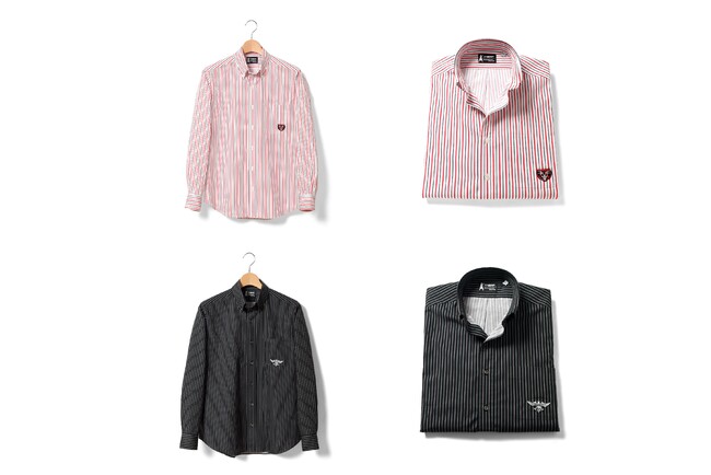 胸囲、ウエストにゆとりを持たせ、ボディラインを拾いすぎないシルエットで作られたカジュアルシャツはタックイン、タックアウトともにしやすい着丈の長さと裾の自然なカーブが特徴。武骨さを演出する4.0cm幅のボックスプリーツに、前立ては伝統的な3.8cm幅を採用。さまざまなスタイリングを楽しんでいただけます。