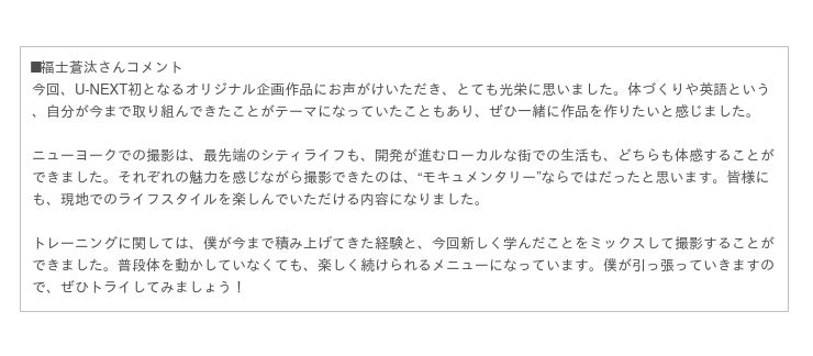 福士蒼汰主演・ダイエットに挫折経験のある全女性に贈る、史上初の“トレーニング”ドラマ『NoMAD Workout -FUKUトレin NY-』がU-NEXTオリジナルで独占配信決定