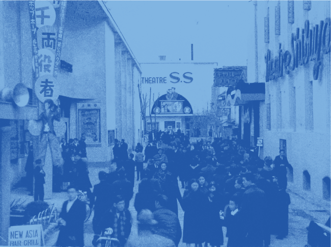 銀幕麦酒(IPA)は、透明感のあるうまみとガツンと響く苦味を柔らかなホップの香りが包み込みます。まるで、フィルムノワール作品のふとした安心感のある一場面を連想させます。3種類のモルト4種類のホップが複雑に絡み合いながらも、まとまりのあるクリアな後味でクセになる味わいとなっております。レトロな雰囲気のラベルのデザインには、1940年代の渋谷百軒店と、オープンした当時のテアトルグループの映画館の写真が使用されており、より味のある一本に仕上がっています。